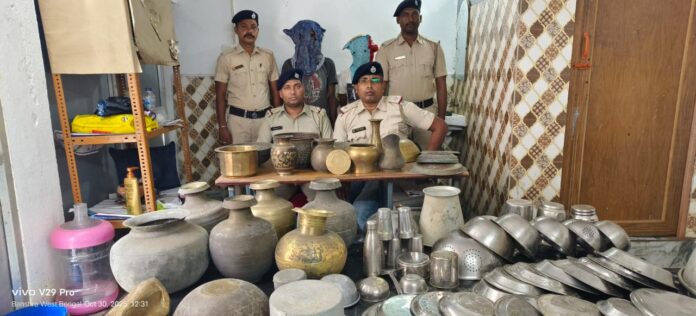 তাদের হেফাজত থেকে উদ্ধার হয় চুরি যাওয়া একাধিক পিতলের ডাবর, গামলা, বদনা, থালা, ফুলদানি,অ্যালুমিনিয়ামের হাড়ি, স্টিলের প্লেট, জগ, মগ, বাটি, এমনকি একটি ভাঙা স্ট্যান্ড ফ্যানও। সব মিলিয়ে প্রায় কয়েক ডজন গৃহস্থালির সামগ্রী উদ্ধার করে পুলিশ। ধৃতদের জেরা করে এই চক্রের সঙ্গে আর কারা জড়িত তার খোঁজ করছে পুলিশ।