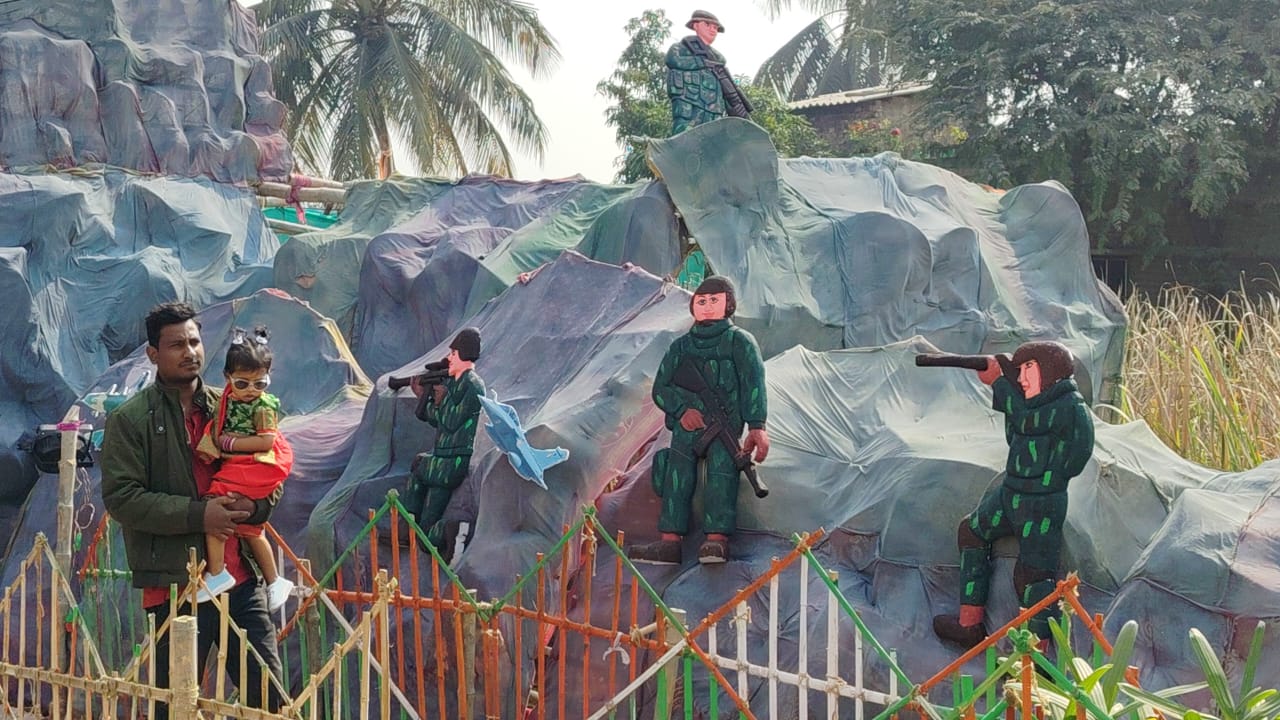 ছাত্র-ছাত্রীদের হাতে তৈরি ‘অপারেশন সিঁদুর’! গঙ্গাসাগরের মণ্ডপে সরস্বতী পুজোয় বড় চমক