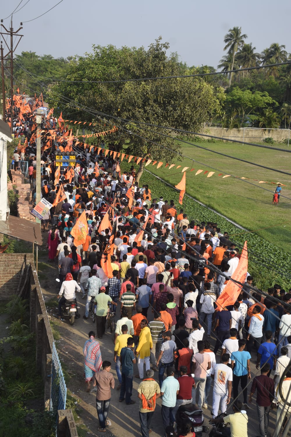 কুনাল মালিক, বজ বজ : ২৭ মার্চ শুক্রবার রামনবমী উপলক্ষে বজবজের সত্যপীর তলা থেকে সাতগাছিয়া বিধানসভার বিদ্যানগর মঠ পর্যন্ত একটি ধর্মীয় শোভাযাত্রা হয়। হাজার হাজার সনাতনী মানুষরা এই শোভাযাত্রায় অংশগ্রহণ করেন। বাখরাহাট রামনবমী উদযাপন সমিতির উদ্যোগে এবং গঙ্গাসাগর জেলা বিশ্ব হিন্দু পরিষদের সহযোগিতায় এই শোভাযাত্রা অনুষ্ঠিত হয়। এই রামচন্দ্রের পূজা এবং ধর্মীয় শোভাযাত্রা এ বছর দশম বর্ষে পদার্পণ করল। পুরুষোত্তম রামচন্দ্র লক্ষণ সীতা দেবীর মর্মর মূর্তি এবং বজরংবলীর মূর্তি সহকারে শোভাযাত্রা শুরু হয়। গেরুয়া ধজায় এবং জয় শ্রীরাম ধ্বনিতে শোভাযাত্রা মুখরিত হয়ে ওঠে। শোভাযাত্রায় যাতে কোন অশান্তি না হয় তার জন্য প্রচুর পুলিশ ও রাফ মোতায়েন করা হয়েছিল।